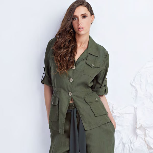 リネン(麻)サファリジャケット ミリタリーグリーン