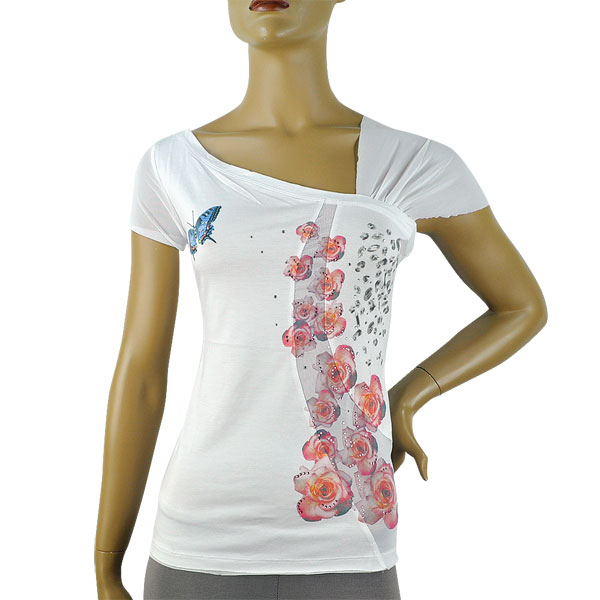 ラインストーン刺繍カットソー 白