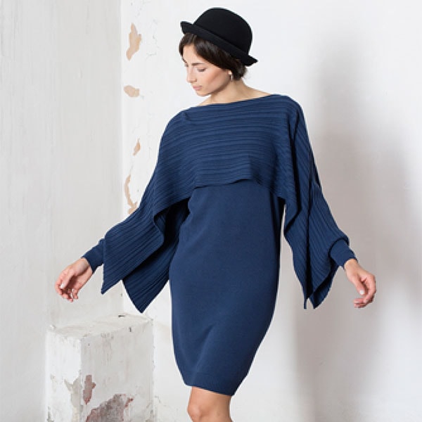 着物スリーブニットワンピース ブルー
