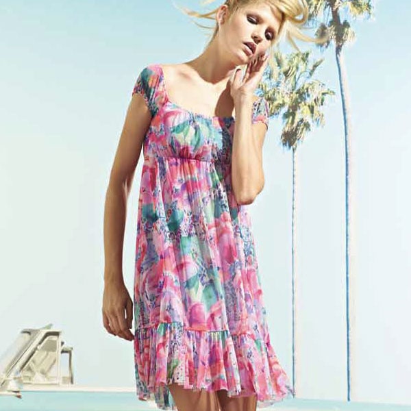 提灯スリーブにスクエアネック、ハイウェストラインと