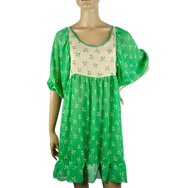 フローラル柄フリルワンピース グリーン