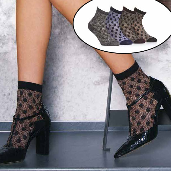キラキラのラメがたっぷりでシックなジオメトリック 柄ソックス。