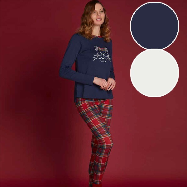 猫の刺繡アップリケがキュートなデザインのパジャマ。