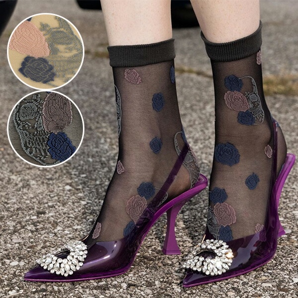 イタリア インポート ブランド 柄ソックス TRASPARENZE OSLO バラ柄ソックス カラー:黒、ベージュ バラの花入りのバスケットが夏のノルウェーの首都オスロをイメージ。 タイプ:柄ソックス つま先補強、足型なし、FREEサイズ(22~25) 素材 42%ポリエステル、50%ポリプロピレン、8%エラスタン デニール 20 イタリア製