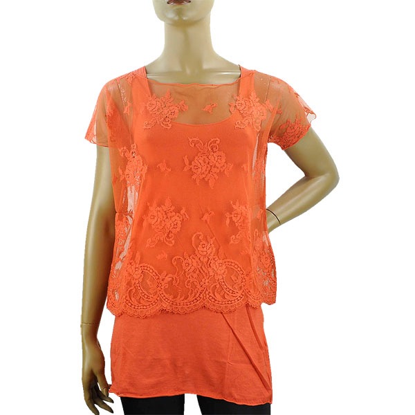 レースカットソー インナー付 オレンジ