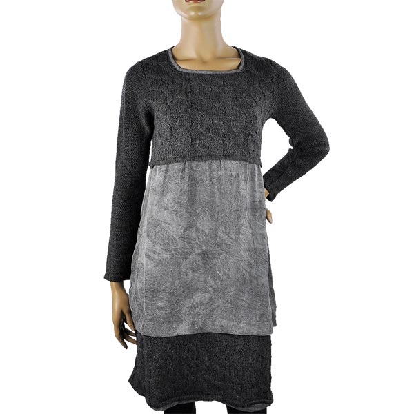 大きめケーブル編みとムラ染め布地の組み合わせが新鮮な