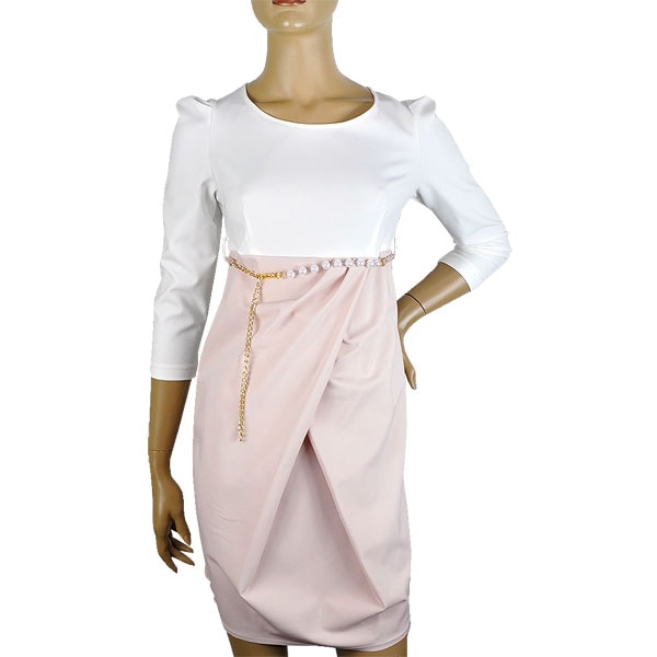 ウェスト周りにパール付のチェーンベルトをあしらって