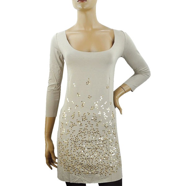 スパンコール刺繍チュニックワンピース ベージュ