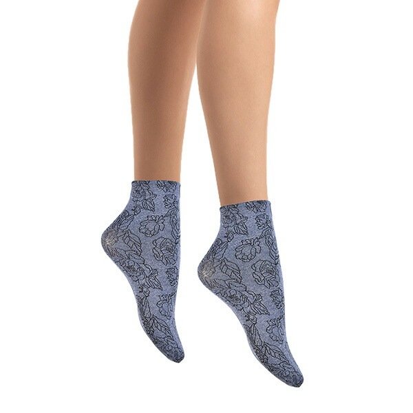 落ち着いたメランジュブルー色にあしらわれた花柄が上品なデザインの